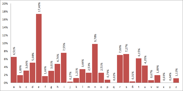 Częstotliwość występowania poszczególnych liter w niemieckim alfabecie: